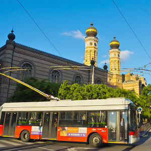 Myös suurta synagogaa vastapäätä Dohány-kadulta lähtevä ja kaupunginpuiston kautta kulkeva johdinauto 74 on varsin kätevä, ja sen kyydistä näkee hyviä kaupunkimaisemia.