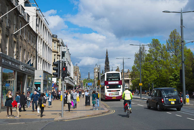 Edinburghissa on matkalaukkujen kanssa hyvä turvautua raitiovaunuun, jolla tosin on rajallinen reitti, ja busseihin, jotka tosin eivät keskustassa ole mikään hirveän hyvä liikkumismuoto mutta joilla voi esimerkiksi vanhastakaupungista siirtyä nopeasti ja vaivattomasti kohti linja-auto- tai rautatieasemaa, jotka molemmat ovat Princes-kadun vieressä.