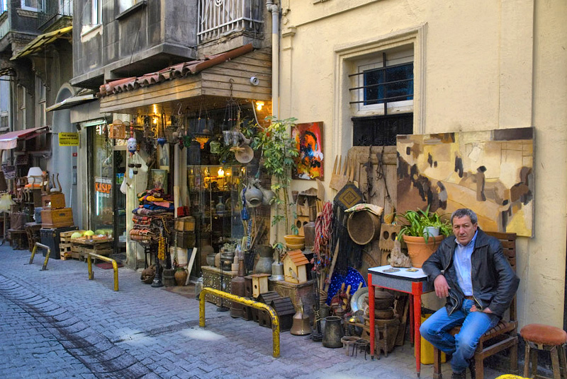 Koko kaupunki tuntuu välillä olevan vanhojen tavaroiden liike, mutta eniten keskustassa tällaista kaupankäyntiä on Çukur Cuma -osassa [kartalla], İstiklal Caddesilta alamäkeen, etenkin Çukur Cuma Caddesi -kadun varrella.
