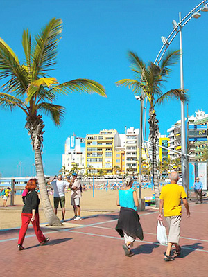 Las Palmasissa on miellyttävä kävellä ympäri vuoden, sillä kaupunki on tasainen, katunäkymät ovat suurelta osin mielenkiintoisia ja säät ovat lähes aina kävelylle suotuisia.