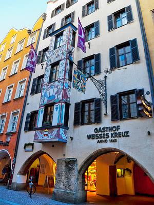 Innsbruckissa on paljon perinteisiä hotelleja. Jos haluaa nauttia vanhastakaupungista, joenrantojen kauniista näkymistä ja muusta ytimen tarjonnasta, kannattaa yöpyä siellä. Hotel Weisses Kreuz on kohtuullisen hintainen perinteinen hotelli aivan parhailla paikoilla, ja sieltä on helppo funikulaarilla lähteä laskettelemaan tai hiihtämään. Kuten monilla muillakin alueen hotelleilla sillä on erillinen suksivarasto.