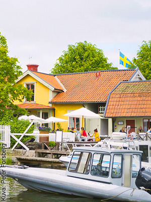 Saaristossa voi myös yöpyä, jolloin parhaita paikkoja ovat helposti saavutettavan Vaxholmin lisäksi Finnhamn ja kuvan Sandhamn.